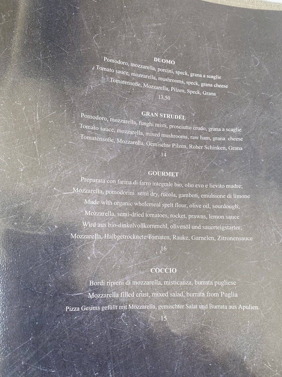 Introducing the Menu at Restaurant Pizzeria Duomo